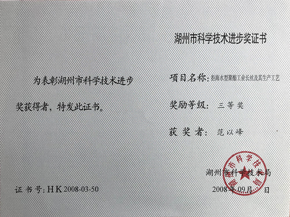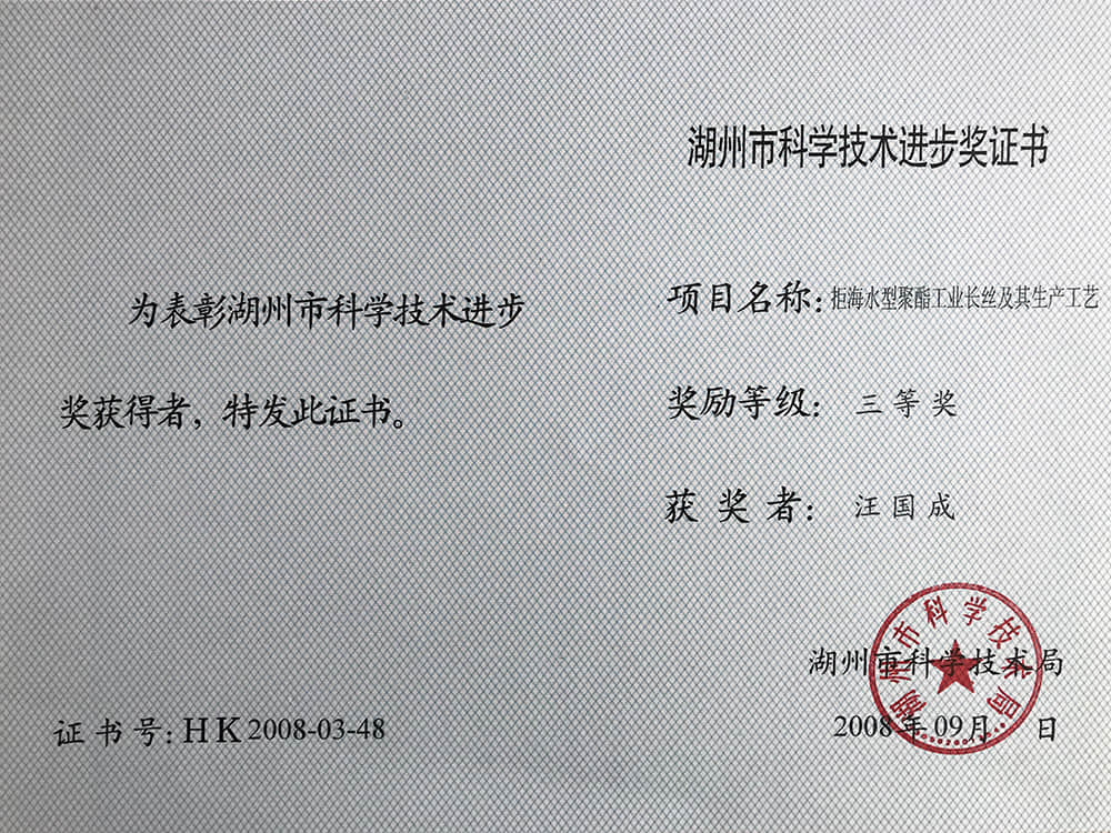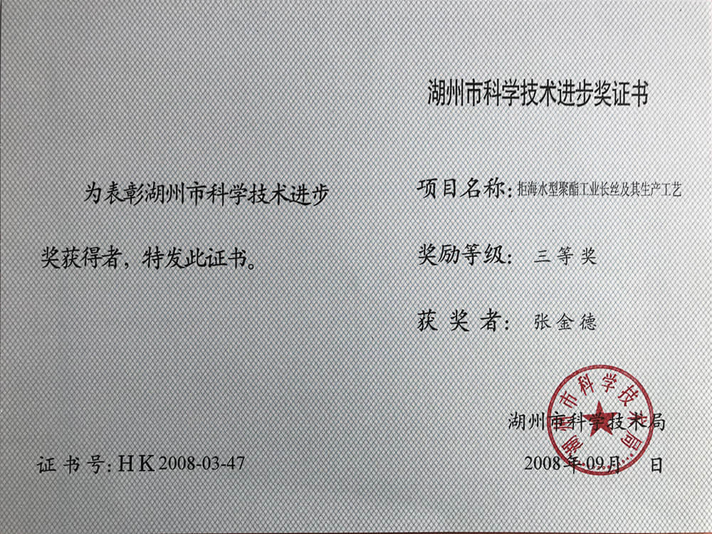 2008湖州市科技進(jìn)步獎三等獎-張金德