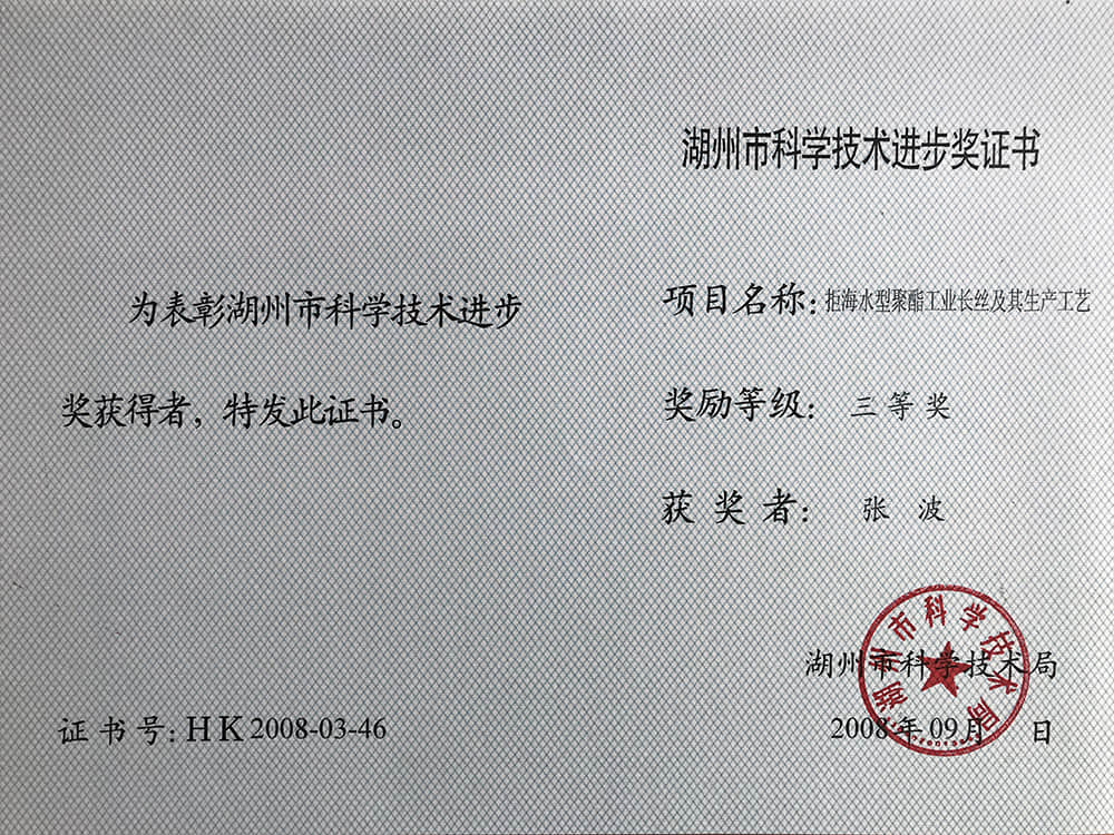2008湖州市科技進(jìn)步獎三等獎-張波